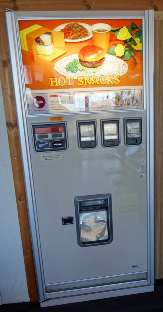 24時間営業が一般的でなかった昭和時代に普及した食品の自動販売機です。